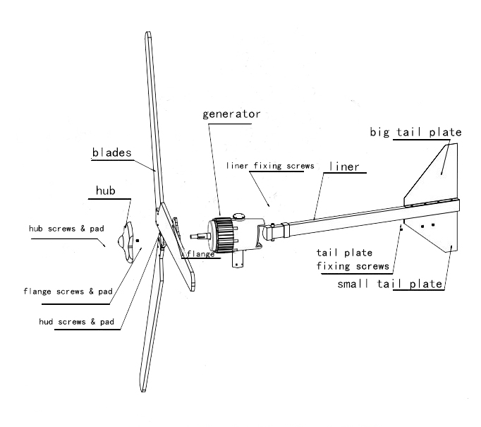 6、獨(dú)特的尾舵預(yù)偏設(shè)計(jì),自動(dòng)精確對(duì)準(zhǔn)迎風(fēng)方向,提高輸出功率同時(shí)兼顧調(diào)整和強(qiáng)風(fēng)保護(hù)。