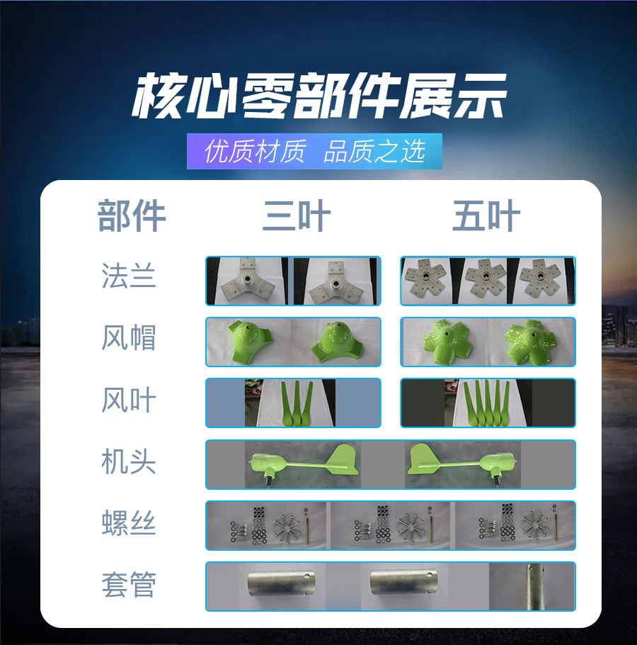 1、風(fēng)葉采用高強(qiáng)度尼龍復(fù)合材料,強(qiáng)度高,韌性好,防紫外線,防腐蝕,抗大風(fēng)。